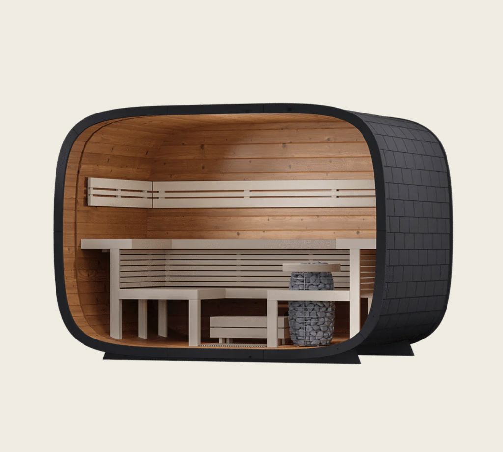 De ideale keuze voor kleinere ruimtes, zoals een compacte tuin of terras. Deze buitensauna biedt plek aan ongeveer 4 personen en combineert luxe met efficiënt gebruik van ruimte.