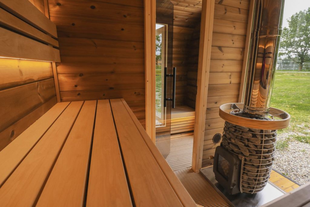 Een sauna ontworpen voor ultieme ontspanning – met een royaal interieur en U-vormige bankopstelling zodat je kunt zitten én liggen. Geschikt voor groepen tot 6 personen.